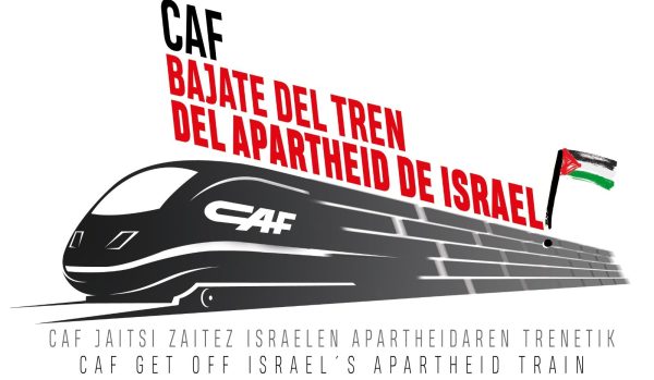 (BDS) (Castellano) Duela 5 urte, Euskal herriko 70 kolektibo, sindikatu eta alderdi politikok kanpaina bat hasi genuen CAF euskal tren-enpresak bertan behera utz zezan Jerusalemen tranbia zabaltzeko eta mantentzeko kontratua. Tranbia horrek Israelgo koloniak eta hiria lotzen ditu Palestinako Lurralde Okupatuan.5 urte geroago, eta CAFek nazioarteko zuzenbidea urratzen eta Israelgo apartheidarekin kolaboratzen jarraitzen duen arren,... Leer más →