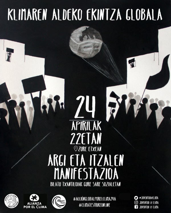 Komunikaua hemen / Comunicado aquí Alianza por el Clima, 2020 Rebelión por el Clima eta Fridays For Future erakundeek aktibismo mota berriak ezagutu ditzazun nahi dugu!Apirilaren 24an, hurrengo mobilizazioa antolatzen ari gara: https://2020rebelionporelclima.net/en/category/acciones/Bizi garen testuingurua kontuan izanda, eta osasun krisiaren larritasuna ondo baino ondoen ulertu arren, ez dugu hau aitzakitzat hartu nahi aldi berean jasaten... Leer más →