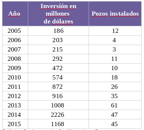 Este aumento na exploração de hidrocarbonetos também é evidente no aumento do número de poços que ocorreu desde que o MAS chegou ao poder com Evo Morales: em 2008, foram 11 poços, em comparação com três no ano anterior, e 2013 foi o ponto alto, com 61 novos poços instalados.