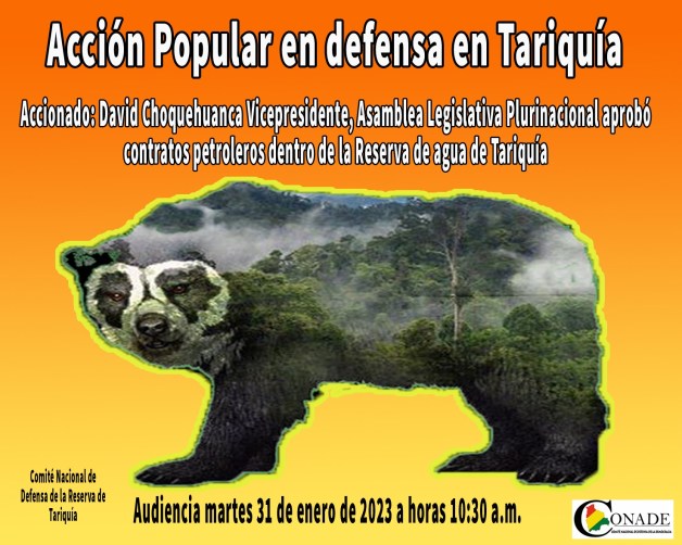 O Comitê Nacional de Defesa da Reserva de Tariquia foi mobilizado durante meses em antecipação ao início da exploração. Agora, eles estão apressando suas últimas opções legais restantes, com base na violação dos direitos coletivos tanto das comunidades quanto dos cidadãos de Tarija e da Bolívia. Em particular, os direitos constitucionalmente consagrados a um ambiente saudável, que neste caso deveria incluir a preservação da Reserva Nacional de Tariquía. Além de desfrutar desta proteção, a Reserva de Tariquía é importante para a população por causa de sua riqueza ecológica. Mas no caso do departamento e da cidade de Tarija, porque é a área que fornece água e também porque é uma das áreas de maior produção agrícola.